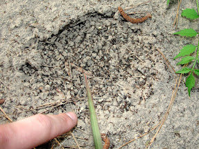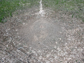 Um so erfreulicher war, dass ich dieses Jahr zum ersten Mal Pogonomyrmex barbatus während meines Aufenthaltes in Texas gefunden habe. Bei meiner Reise 2008 hatte ich sie an keinem der besuchten Orte angetroffen, doch dieses Jahr schossen ihre Nester an gleicher Stelle nur so aus dem Boden. Dabei spielte der Abstand der Nester scheinbar keine große Rolle. Sie traten in hoher Dichte auf, auch wenn die Nester schon eine enorme Größe angenommen hatten. Sie sind offensichtlich sehr produktiv, da sich große, Krater-förmige Nester an Stellen fanden, die 2008 noch gänzlich unbesiedelt waren.