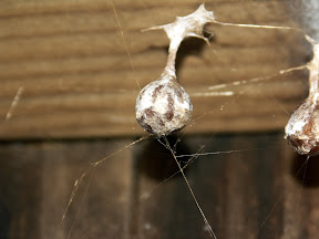 Dieses Weibchen der Art Mastophora leucabulba habe ich direkt hinter dem Haus am Gartenzaun gefunden. Sie hatte sich den Tag über an einem Querbalken häuslich eingerichtet und auch bereits sechs Kokons produziert. Leider war sie nachts nicht mehr dort anzutreffen, so dass ich bislang leider keine Bilder während der Jagd machen konnte